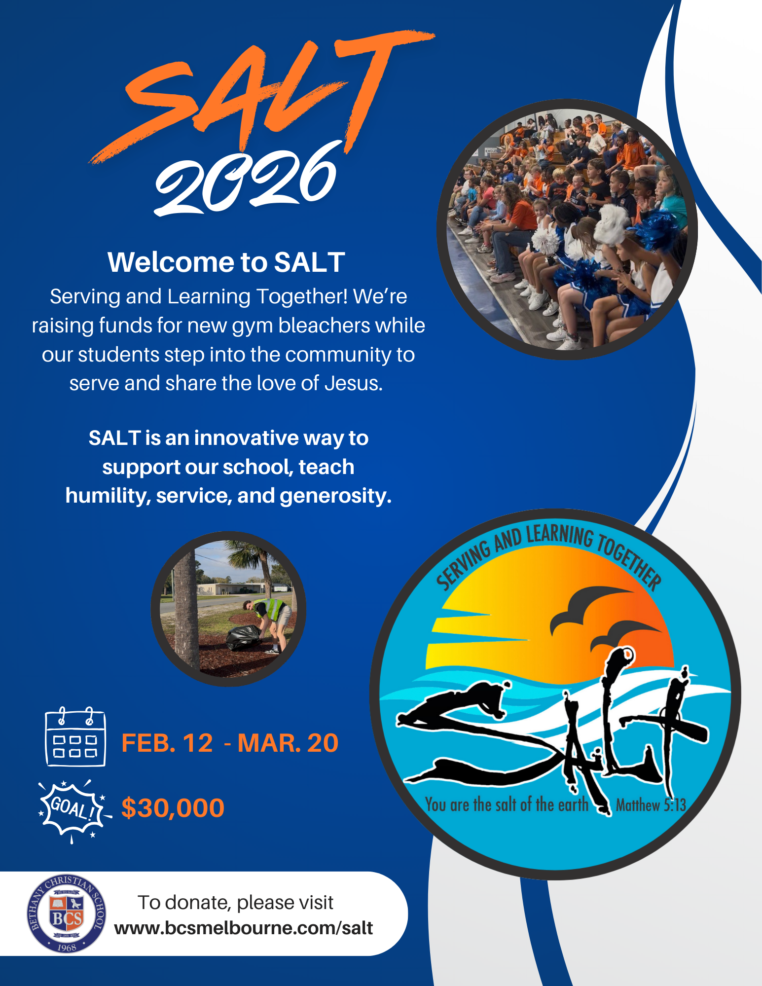SALT is a school-wide initiative that brings together faith, service, and stewardship. Students will serve our community in meaningful ways while our school unites around one shared goal: improving the gymnasium experience for athletes, families, and school events.